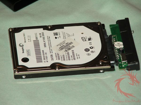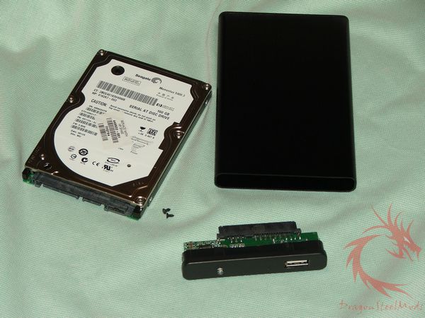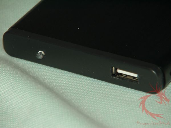 The hard drive enclosure is very plain, just black aluminum, on one side the USB port and an LED indicator. The enclosure is not much bigger than a 2.5” HDD so it won’t add much to the size of your drive.