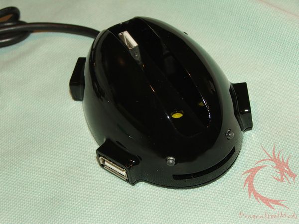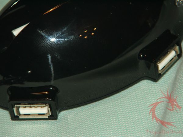 The actual dock is made of a glossy plastic, the version I got was obviously black in color but there is the choice of red as well. There a big slot in the center with a USB port in it, the enclosure with HDD goes here for docking and access to the data on it.