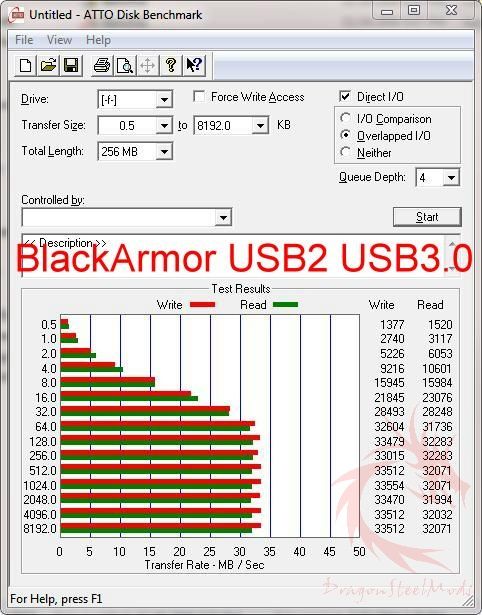 ATTO DiskBench. For this test I took the original USB2.0 BlackArmor