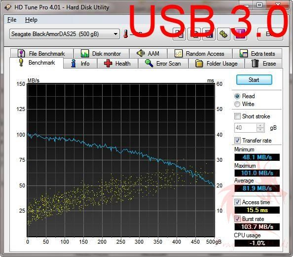 HDTune Pro on just the BlackArmor USB 3.0 drive comparing it to the
