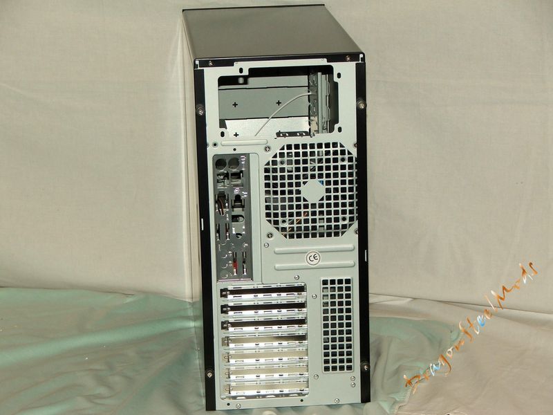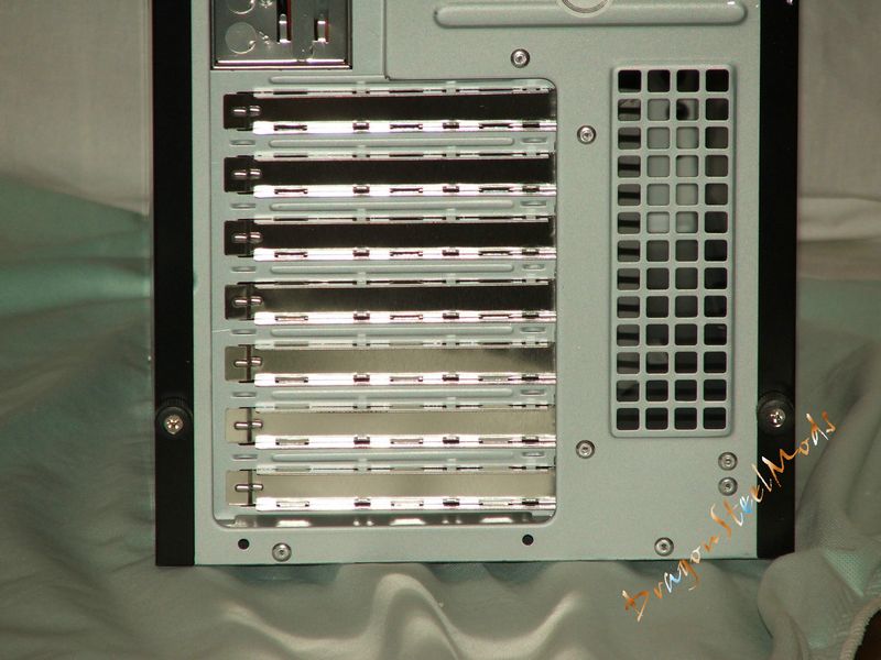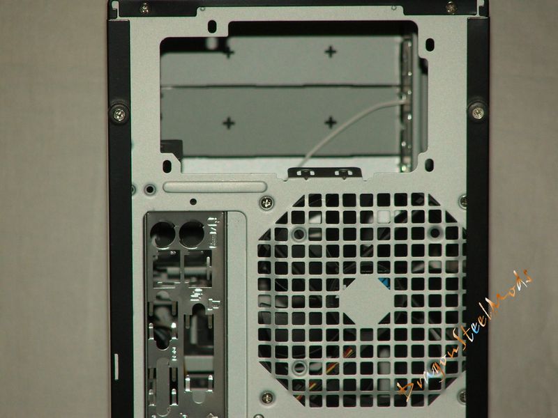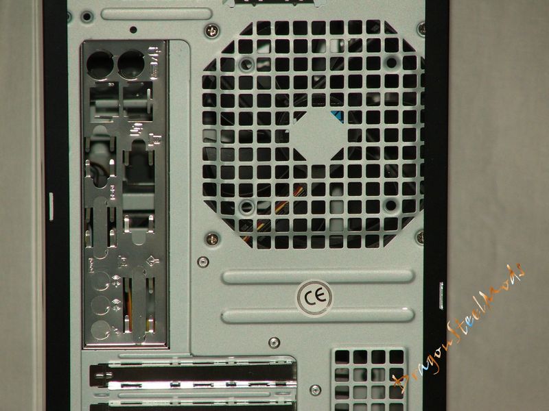 Looking at the back we can see the PSU space, 120mm fan, I/O plate and the PCI slots, these are not tool-less though.