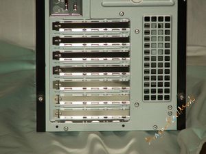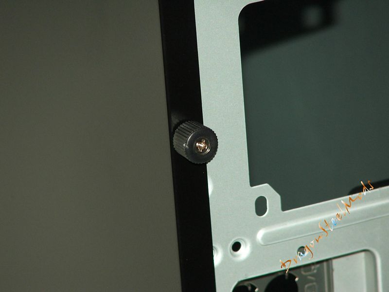 The rear of the I-Curve has a familiar configuration, PSU at the top, I/O plate and 120mm fan in the middle and the PCI slots on the bottom, both sides of the case are held on with special thumbscrews.