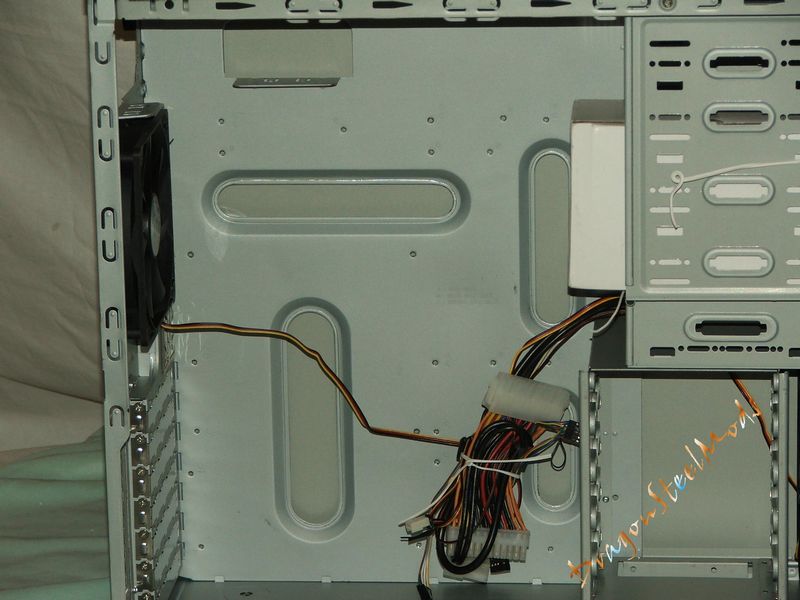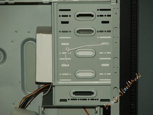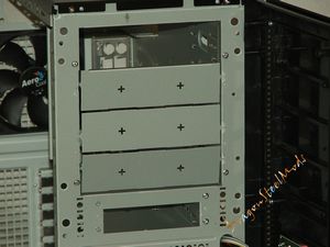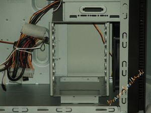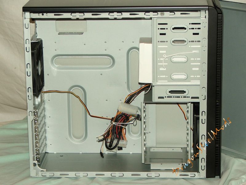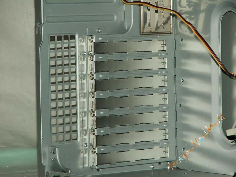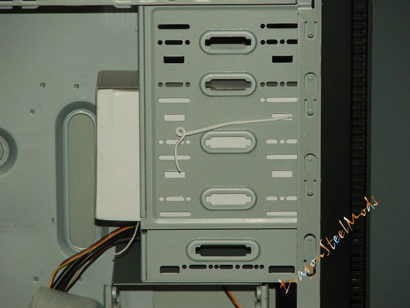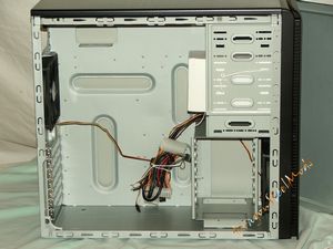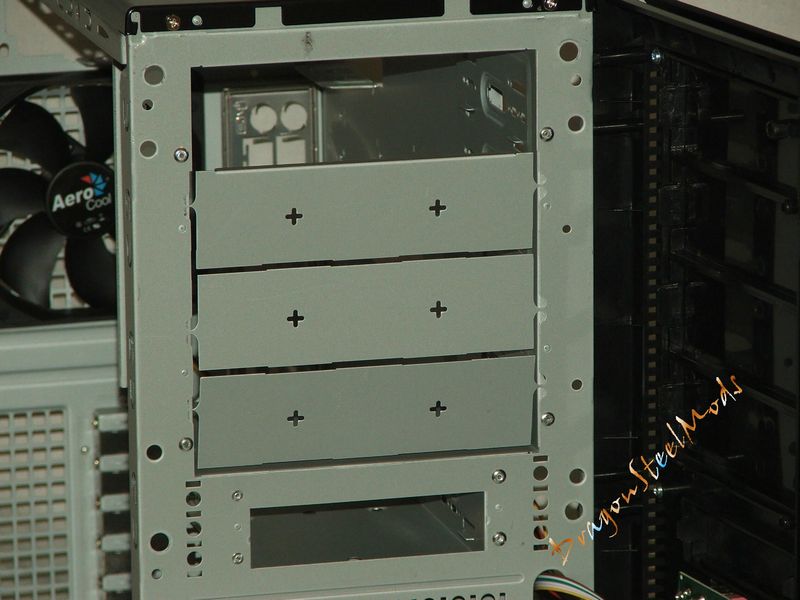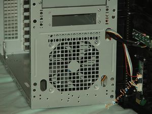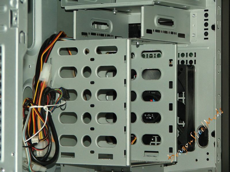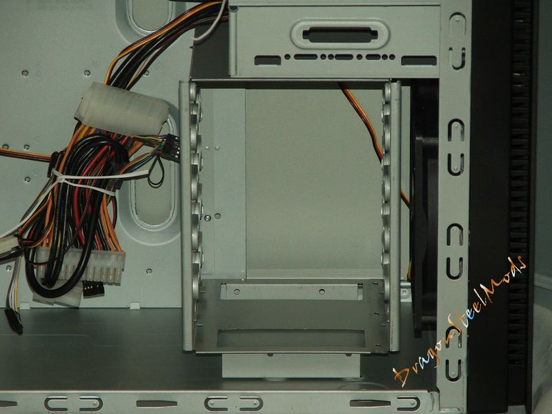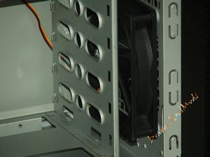 Beneath the 5.25” bays is the 3.5” bay and of course under that is the hard drive cage. Located in front of the HDD cage is the 120mm intake fan.