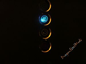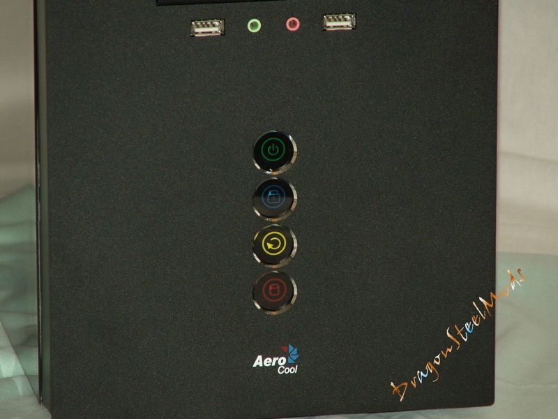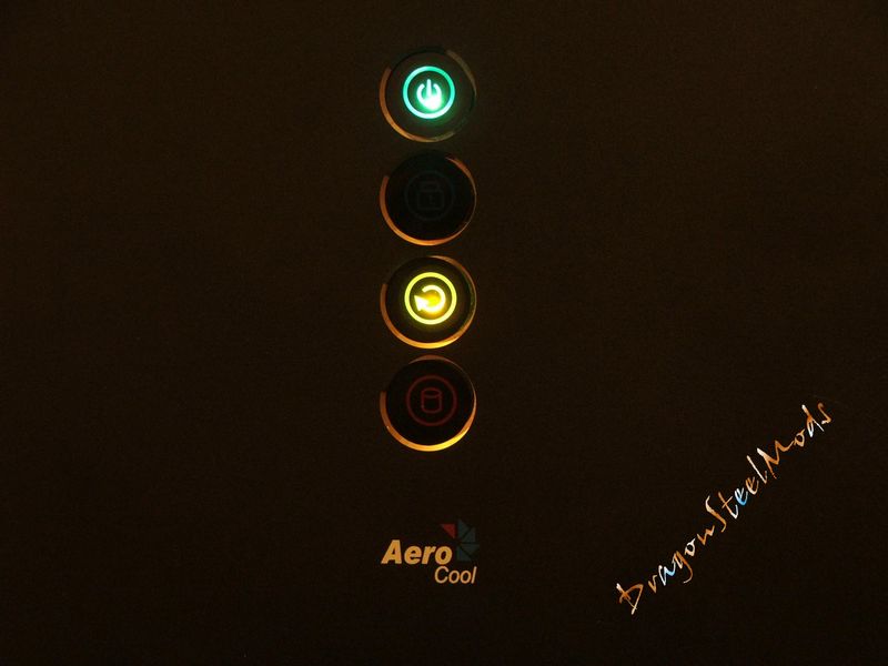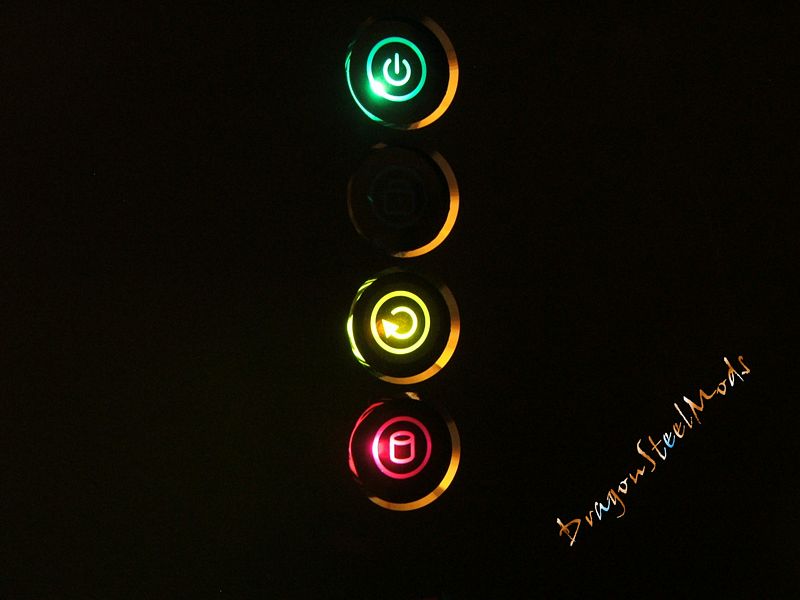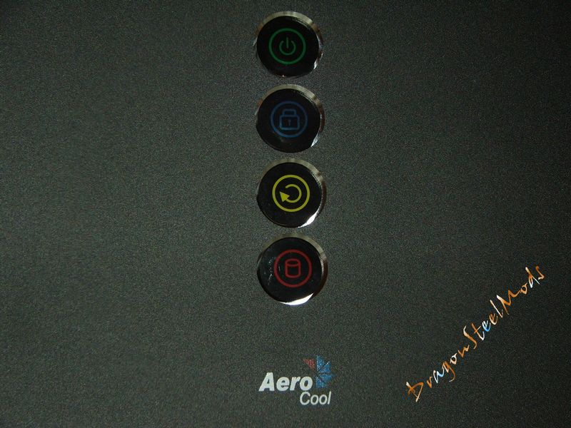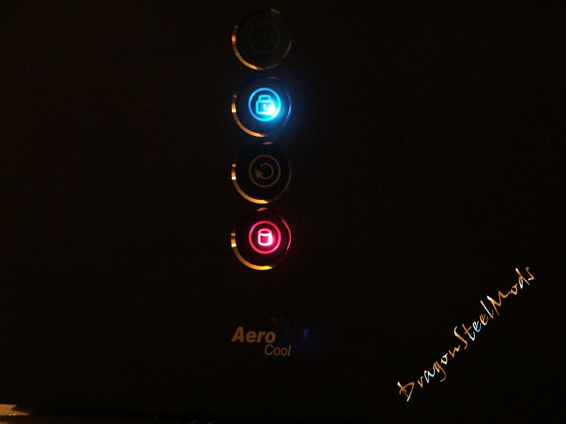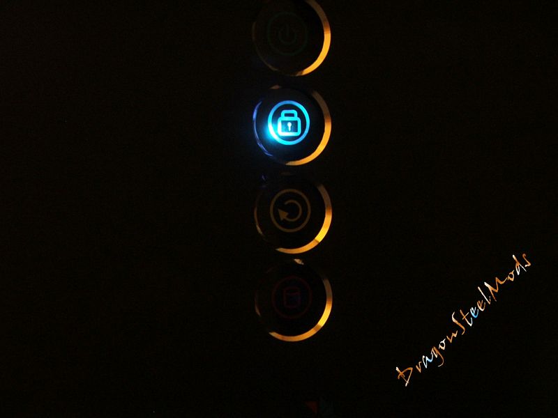 You can lock and unlock the touch panel if you wish by touching the lock symbol, this will prevent any accidental button presses as they are sensitive to the slightest touch… Green is the power button on the top, then blue for the lock, yellow for reset and on the bottom is red for hard drive activity.