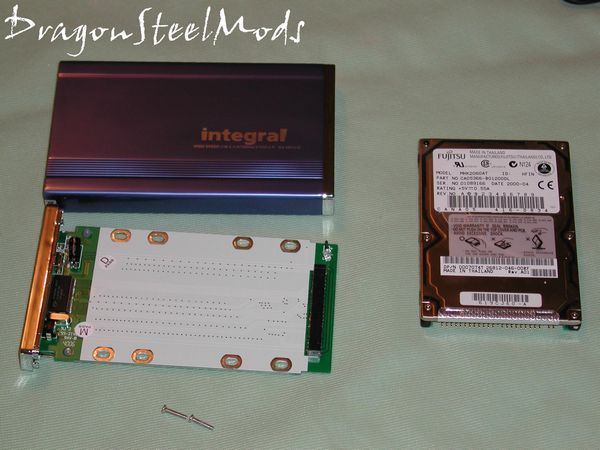 The Akasa integral does not come with a hard drive, so you’ll need to provide one. I keep a 5 gig 2.5 HDD floating around for just such an occasion as this. Installation is very easy, remove the two screws at the end and pull the board out.