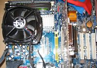 During the Second Opinion, I test products that were previously reviewed by Dracos. So the Alpine 64 needed a re-coating of thermal compound. I decided to use Arctic Silver 5 and applied it to the CPU and the heat sink after removing the used Arctic MX-1 compound. After cleaning the base and my CPU with Isopropyl Alcohol, I put a small dollop of AS5 on my CPU and rubbed in a small amount of AS5 into the base of the Alpine 64.