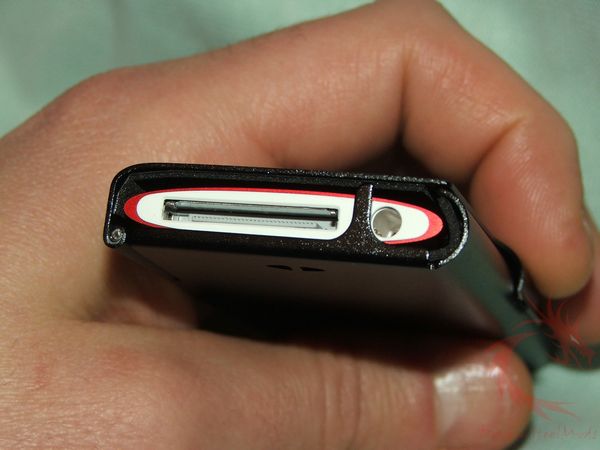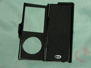 It’s all black obviously and it seems well made, it’s fairly rigid, but being aluminum it is flexible. It’s basically one piece, there are hinges on the side for the top, it opens like a door, you put your iPod in and close it up. It is padded inside to protect the nano and to make it fit nice and tight.