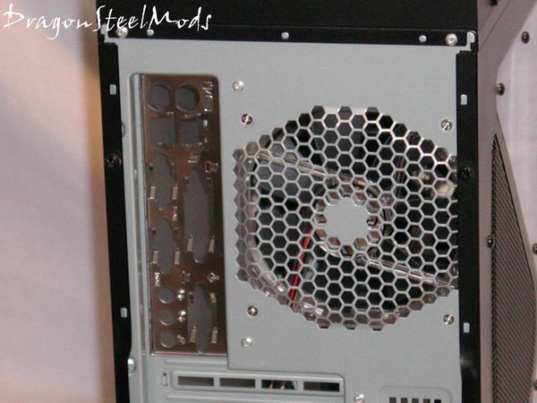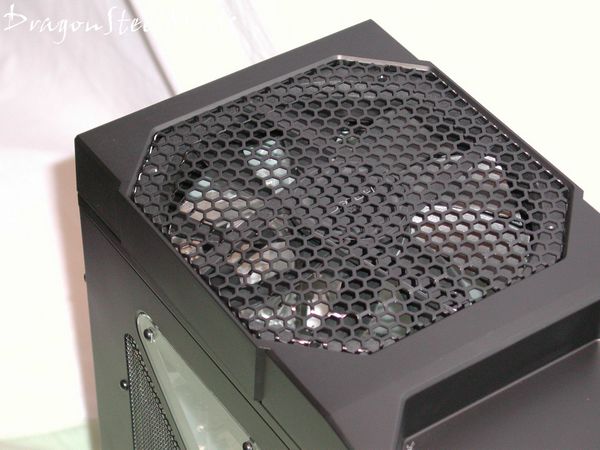 The 200mm exhaust fan is covered by the common honeycomb fan grill to allow for optimum airflow to exhaust the most heat from your case.