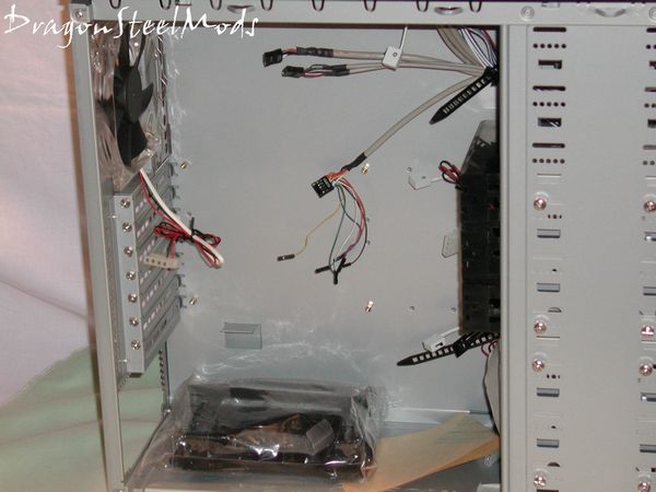 Taking a look at the inside from an angle we can see there is another optional fan mount for a 120mm fan, this mount is attached to the hard drive cages and can be moved to either cage or removed altogether if need be.
