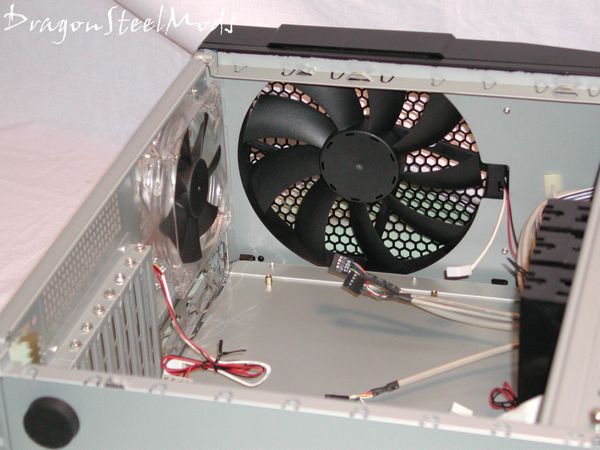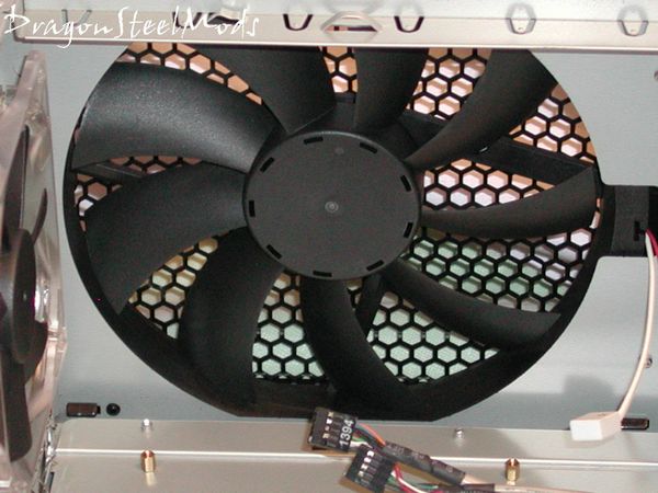 The HDD cages act as air ducts to take air in more efficiently. Optional middle 120mm fan bracket to