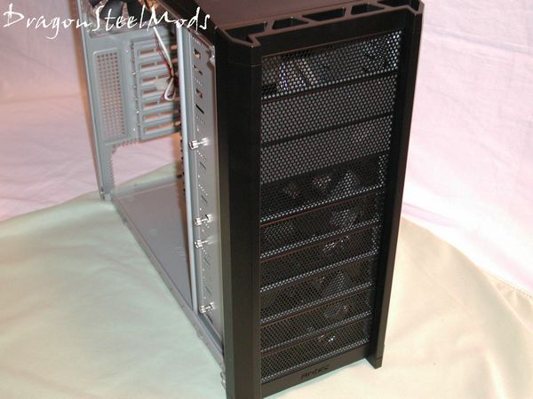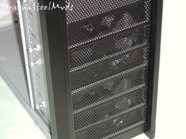 Pretty much the entire front is on big fan grill, you can see two 120mm fans come pre-mounted for cooling. The entire front can be re-arranged for any configuration of drive the user would like.