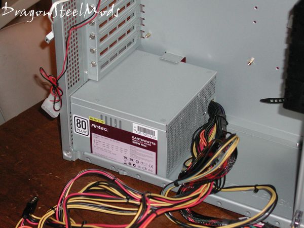 Next up I installed the power supply, an Antec EarthWatts 500Watt PSU to be exact, hey Antec case, Antec PSU, great combination…