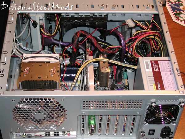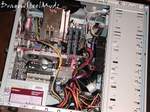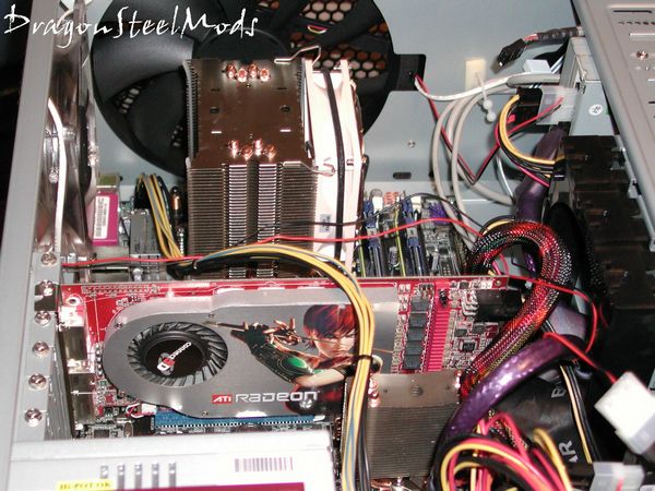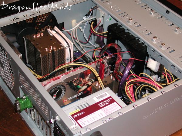 There seems to be ample room for everything inside the Nine Hundred, even larger sized video cards should have no problem fitting, but the extra internal fan mount may have to be removed for them to fit. I did find having the power supply on the bottom a bit of a challenge for routing wires, you can see in the second picture I have on of the power wires going over top of my video card.