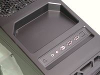 Behind the buttons and ports is where the tray is located, Antec included a rubber, textured insert for the tray as well, that we'll see soon.