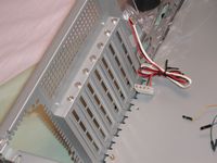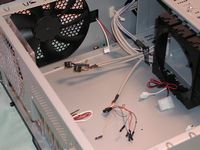 Also inside we find the standard motherboard header connections, Firewire, USB, and Audio. Antec also included a wire management system in the form of a plastic 'belt' and twist fastener at the top of the case. You'll notice in the following picture that the fan power connectors are also the pass though type so you won't loose any connectors.