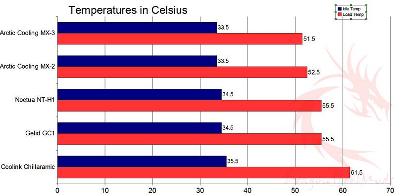 ARCTIC MX-3, the CPU core temperature is 7°C and 2.5°C lower than