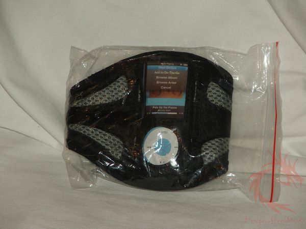 Opening up the bag we find just the armband, and inside of the case is a cardboard representation of the iPod.