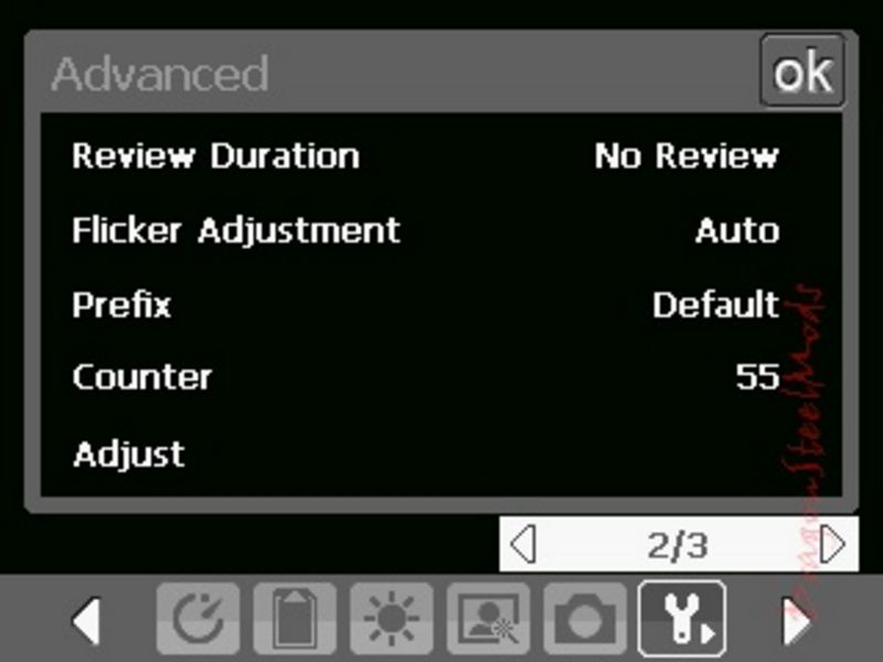 As far as the actual picture quality that can be taken with the camera, well that's a mixed deal, it seems to really depend on the overall lighting conditions when using the Auto mode of the camera, but of course you can go in and adjust some of the settings manually if you wish to really improve the pictures. There's quite a bit of settings you can access via the menus, and here they are: