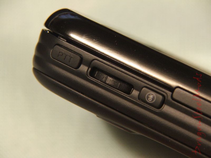 on the left side of the phone is where you'll find the PTT button, 'OK' button and a scroll/navigation wheel that can be used for various functions depending what you are doing.