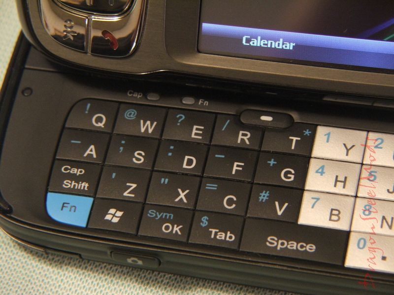 To access the keyboard you slide the screen to the left, or you slide the keyboard to the right.. whatever. I've noticed that some people have complained that the keyboard is on the wrong side of the phone, I don't understand that at all really, it seems perfect like this. As the name Tilt suggests, the screen tilts so you can get a better view of it, and it resembles a miniature laptop like this.