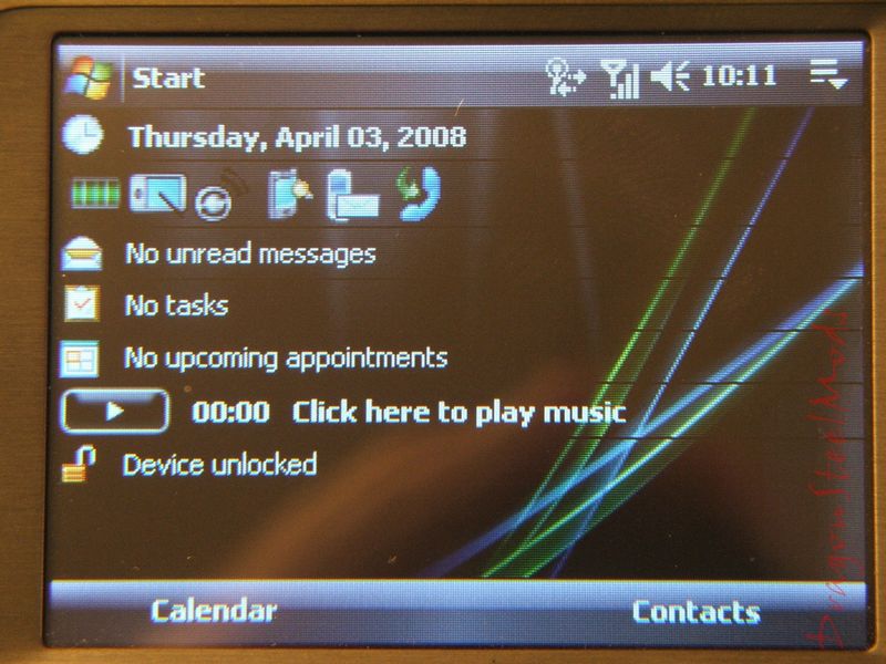 Here is a regular picture I took, it's just the basic Windows Mobile screen with a Vista themed background: