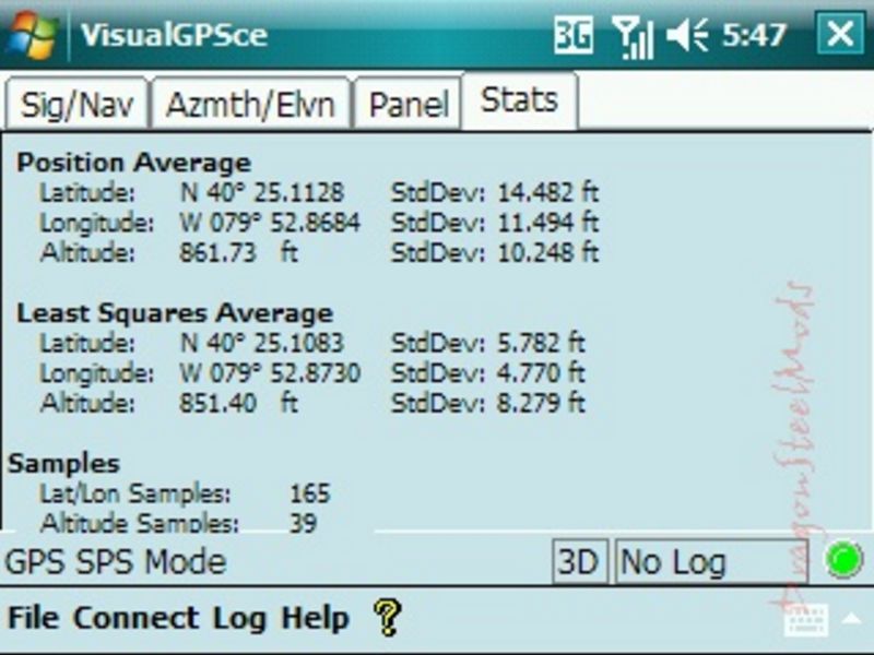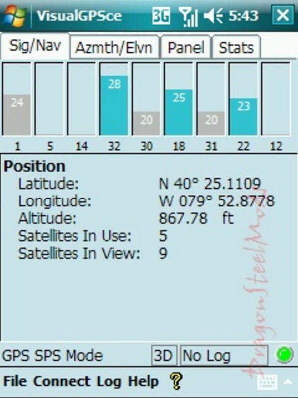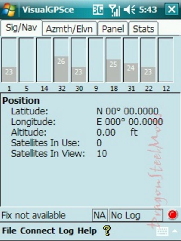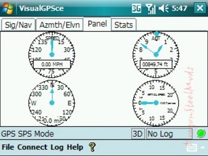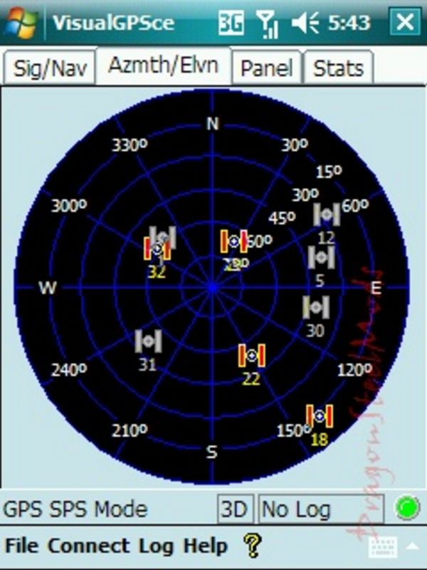 -VisualGPSce is a free PocketPC application that displays GPS data graphically as well as record the raw GPS data (NMEA 0813) to a file. Other features include satellite azimuth/elevation, GPS signal quality, analog gauges and statistical position averaging