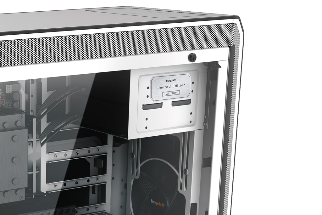 As the name suggests, Dark Base Pro 900 White Edition is coated in striking white color. be quiet!’s designers focused on matching the white tones of different surface materials to achieve the case’s aesthetically pleasing and consistent look. To meet the new color theme, the side panel window’s tint was changed from soft brown to a light grey. Each Dark Base Pro 900 White Edition is one of a kind and comes with a numbered aluminum badge, reflecting its limited availability worldwide and making it highly sought-after amongst PC enthusiasts.