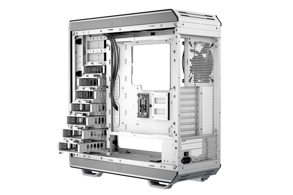 Dark Base Pro 900 White Edition leaves nothing to be desired regarding possible system configurations due to its modular design, enabling numerous possibilities for optimal component placement. The removable motherboard tray can be installed in six different positions and accommodates all types of motherboard form factors, up to E-ATX or XL-ATX – all while fitting needed hardware components and accommodating cooling configurations perfectly without issue. Dark Base Pro 900 White Edition offers unbeatable flexibility and compatibility, providing a perfect enclosure for enthusiast-level configurations, water cooling and overclocking builds, whisper-silent systems and higher-end workstations. For storage components, Dark Base Pro 900 White Edition offers sufficient mounting space, making it possible to install up to 15 solid state drives, seven HDDs, and two optical drives.