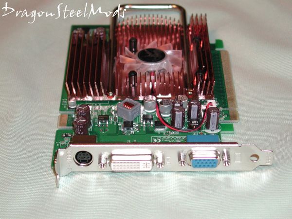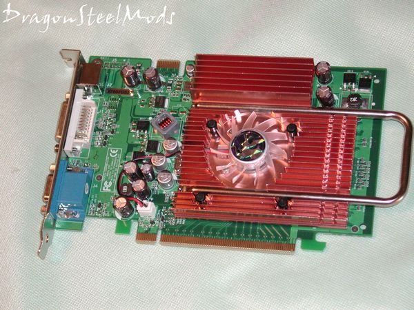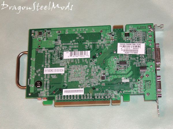 The card looks fairly cool actually, the fan has a cool little dragon on it and no fan guard. With the 7600GS there is no PCIE power connection, but there is an SLI connector so you can run these in SLI mode if you wish to make a nice cheap SLI setup.