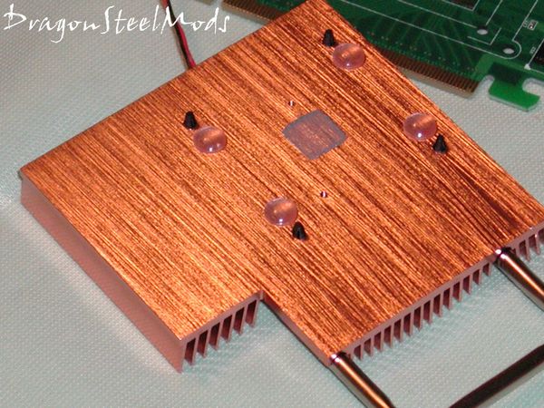 The heastink/fan covers the GPU and ram to help cool it, or at least I thought it did, upon closer inspection I found that the heatsink does not actually touch the ram at all. The gap is tiny and I really could not get a good pictures of it, but the gap is there. The heatsink has these plastic little feet stuck to it to keep it aligned with the core.