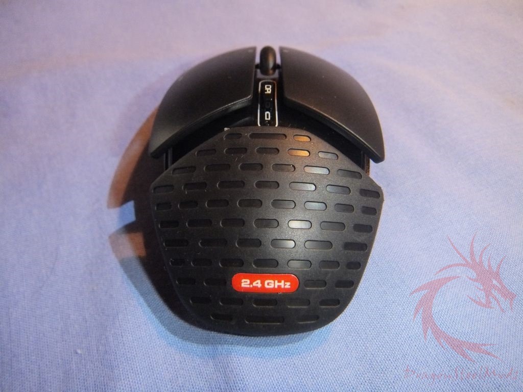 The back of the mouse is a rubberized palm grip with the little 2.4ghz logo there.