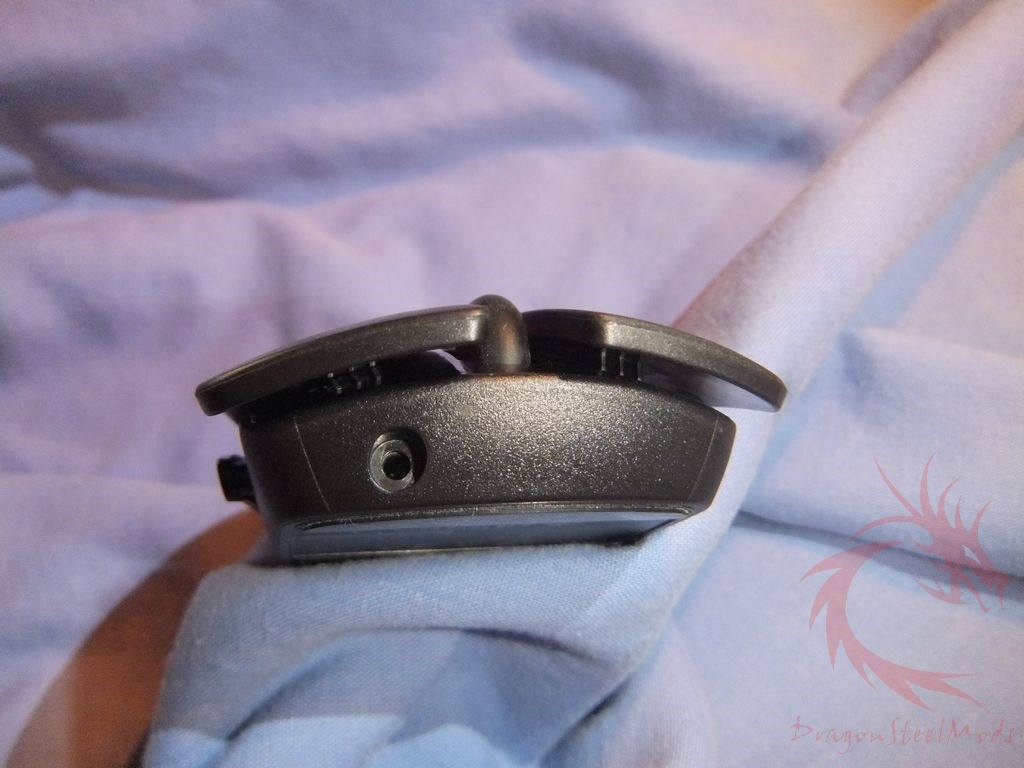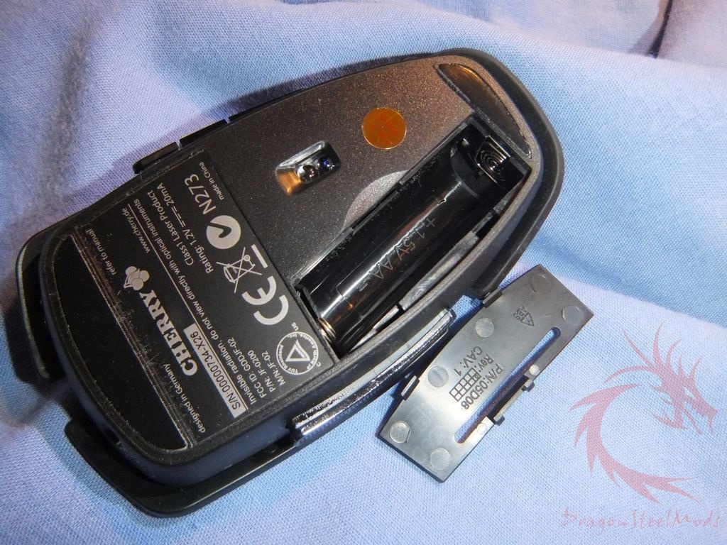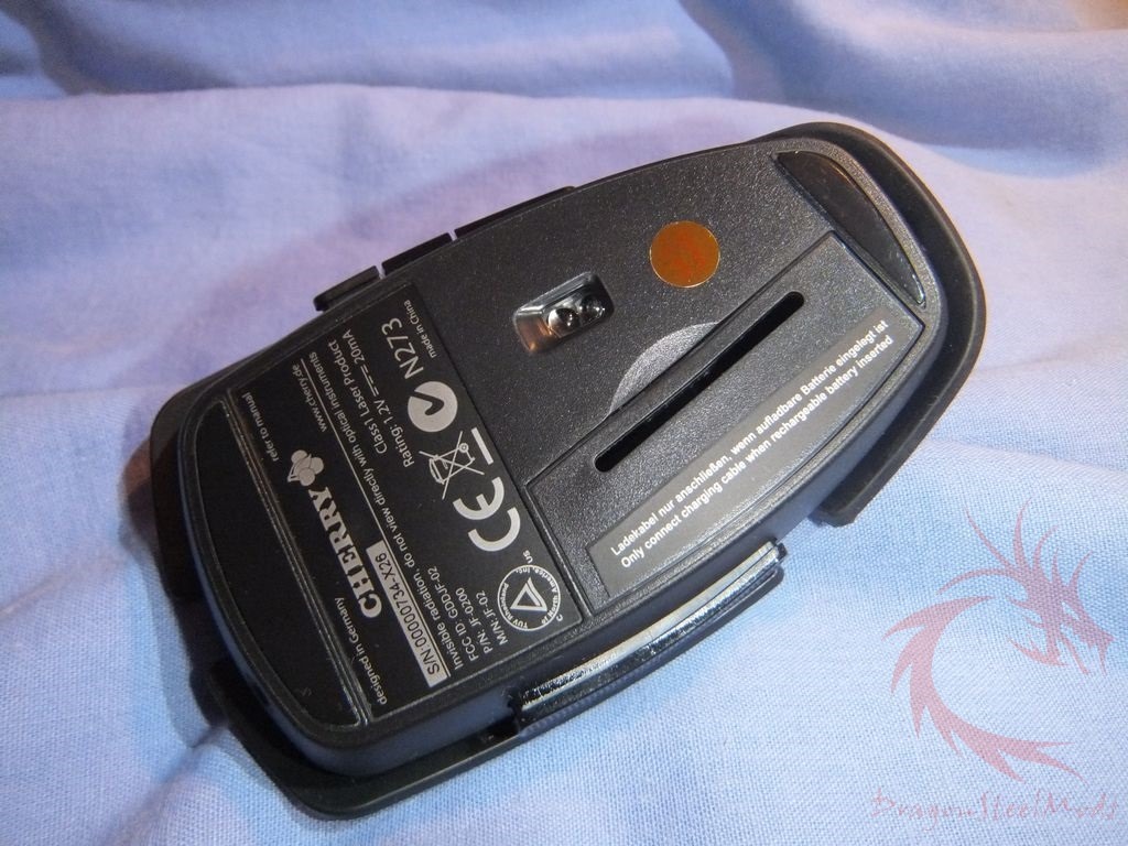 On the bottom you’ll see the laser sensor, battery compartment and the mouse feet which are large section at the top and bottom.