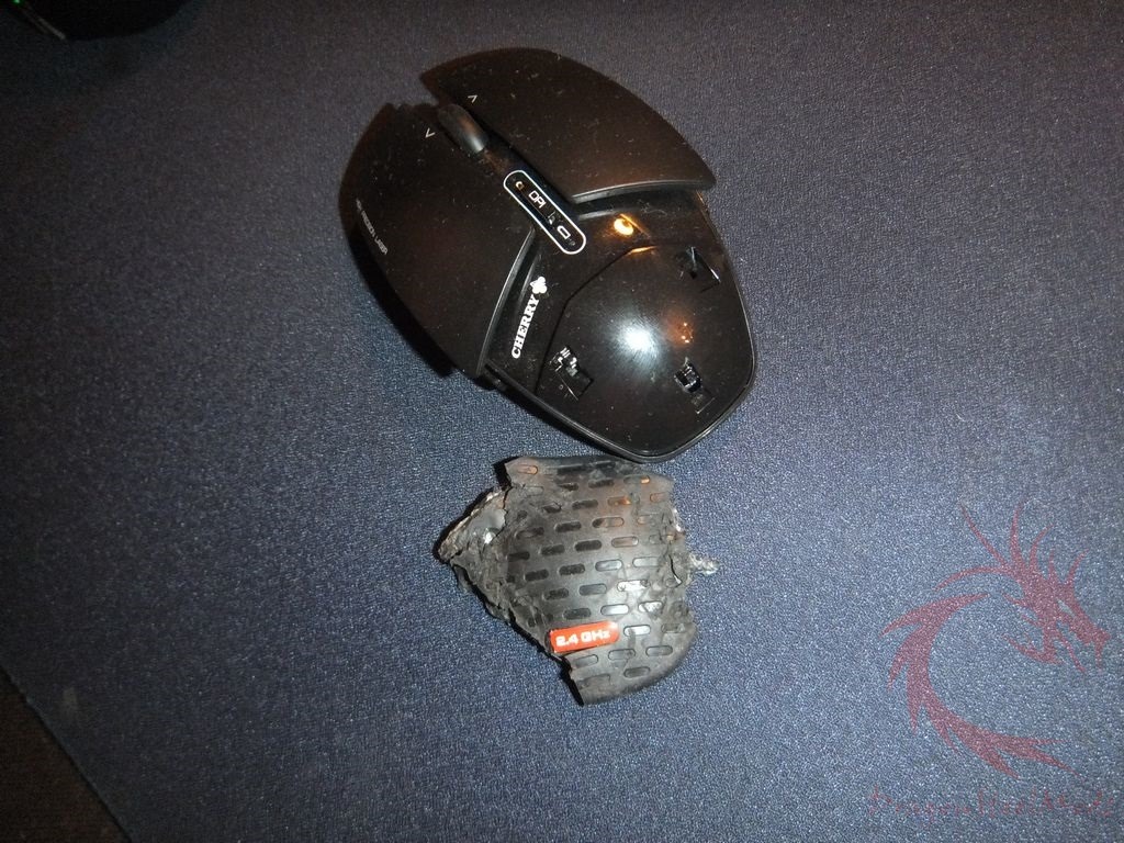 I found this out because my goofy dog, who likes to jump on my desk when I’m not around and see what’s going on, one day decided to eat it. Somehow she got just the palm section off of the mouse and destroyed it, and left the rest of the mouse intact. I should note my dog is an American Pit Bull Terrier and honestly I’m very surprised that there’s anything left of the mouse at all!