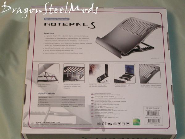 The back of the box goes in depth about all of the features and specs of the Notepal S, including many more pictures and diagrams of how the Notepal S functions.