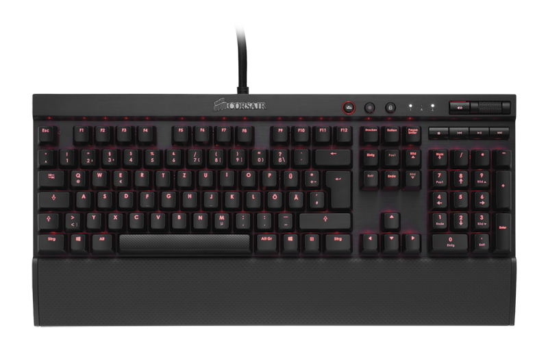The new Vengeance K70 gaming keyboard is built on a rugged, brushed, aluminum chassis and features highly responsive Cherry MX Red mechanical switches under every key. The high performance switches combined with the keyboard’s 100% anti-ghosted matrix, 20-key rollover and 1000Hz reporting rate provide fast, accurate input for gaming.
