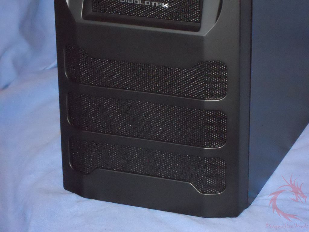 and one 3.5” bay that has the Diablotek logo on it. Under the bays are vents