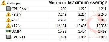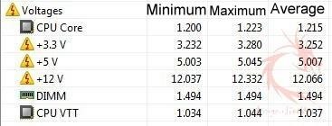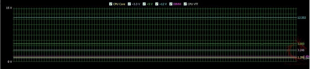 The 3.3v drops slightly under load for the average and even at minimum and maximum loads. The 12v line looks good and it increases voltage under load as you’d expect