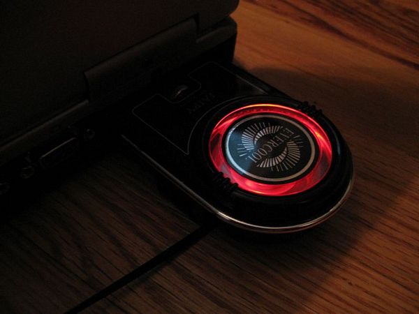 When plugged in the fan gives off a nice red glow. Acoustically, the fan is relatively quiet and is inaudible over the laptops normal ambient noise.