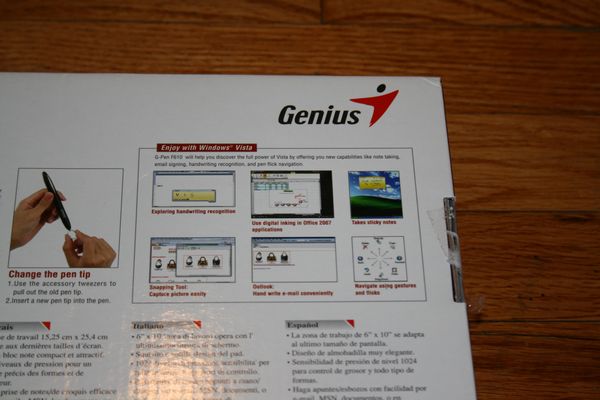 The Genius G-Pen F610 tablet is very slick in its appearance. The border is a piano black finish reminiscent of the Logitech DiNovo keyboard.