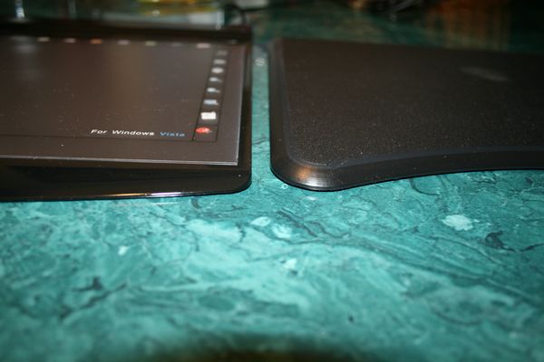 The working surface measures 10 x 6 inches. Actual physical dimensions for the F610 are 12 x 11. One of the first things noticeable about this tablet is its low profile. In fact, it is thinner than most gaming mouse pads.