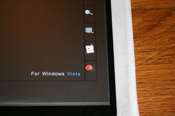 The surface of the tablet has a clear plastic overlay which can be used for tracing pictures held underneath it. Beneath this tracing surface is a black sheet with icons for the Hot Key buttons which are found along the periphery of the working surface. There are two sets of these black sheets, one designed for Windows Vista, the other for Windows 2000/XP.