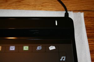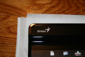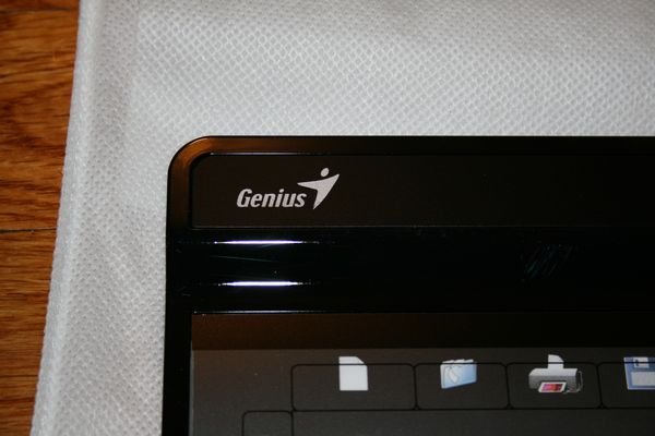On the top of the tablet, one finds the Genius logo on the left hand side and on the right there is a blue LED light which blinks when the F610 is plugged into the USB port.