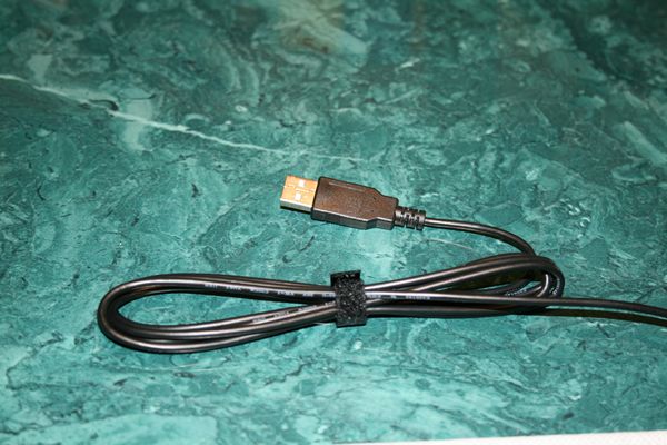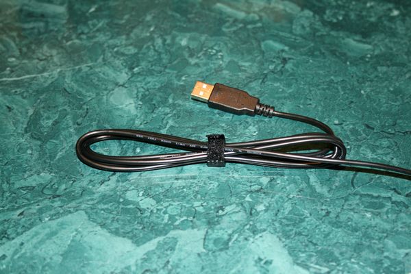 The USB cord measures five feet in length and features a Velcro ring for cord management.