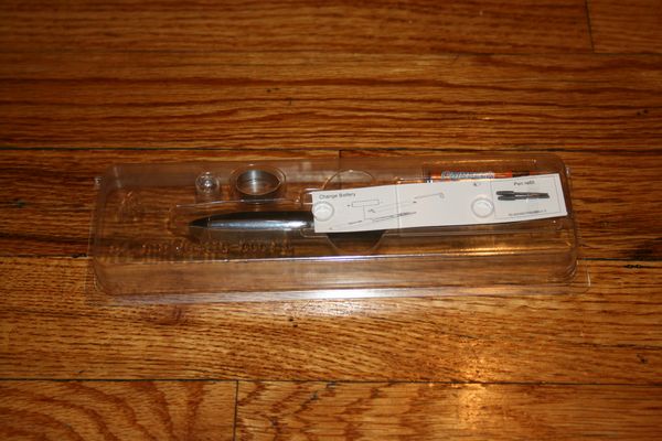 The pen requires a single AAA which is included. The pen is composed of a slate grey plastic with a clip at the top and two buttons on the lower portion. These two buttons are equivalent to the left and right click buttons on most mice.
