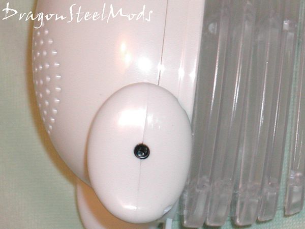 On the left side of the fishes fin in the audio input jack, the front of the fish is where the speaker is located, on the front of the fish is where the speaker is located and on the right fin is where we find the power jack.