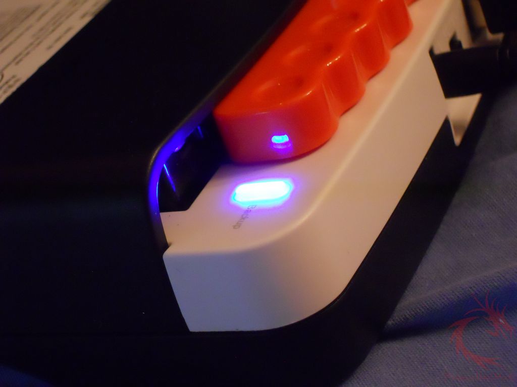 HDD activity. This LED will light blue for a USB 3.0 connection and green for a