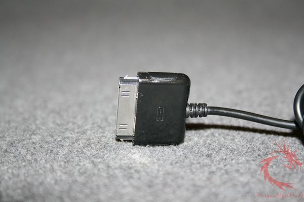 Towards the rear is a standard sized USB connector. At the very end, one finds the charging cable which plugs into one of the numerous Apple idevices.