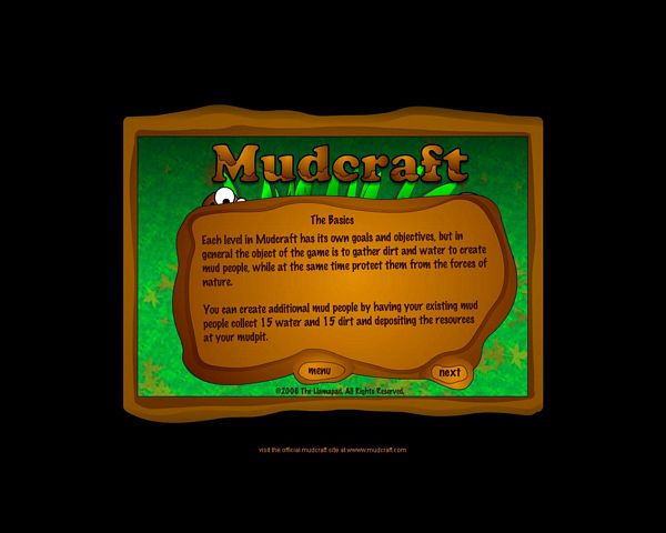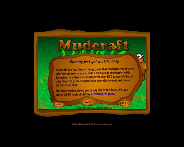 Description: Mudcraft is a web-based, real-time strategy (RTS) game that challenges you to work with Mother Nature as you build a strong mud community while foregoing the violence associated with most RTS games. Mudcraft is a lighthearted game designed to be enjoyable to male and female players of all ages.