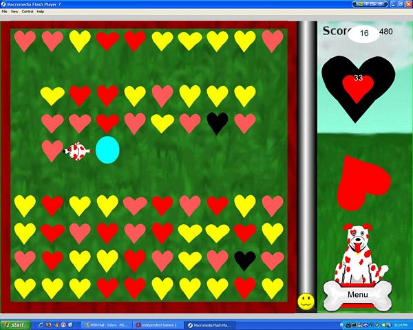 Description: Puppy love is a puzzle game where you try to collect hearts of the same color one after the other. Your combo grows with every heart that matches the same color heart that was just collected. There are also multiple modes to increase the game play.