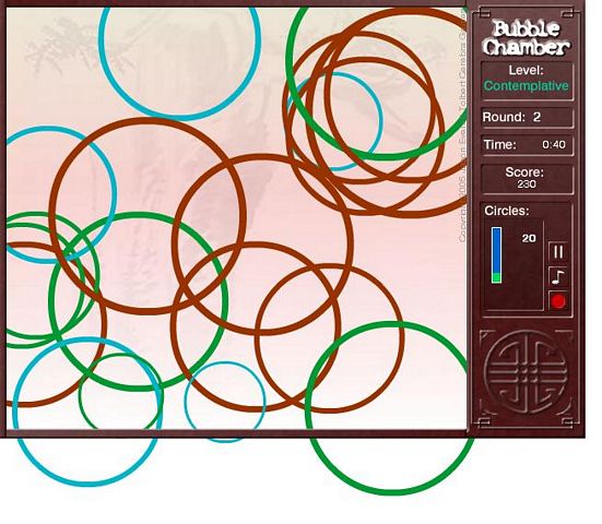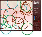 Bubble Chamber is a fun, stylish, and addictive game that both children and adults can enjoy. The rules are simple: Get rid of all the circles by matching (overlapping) circles of the same color. The catch: If you overlap circles of different colors, new circles appear! Four levels of play with increasingly difficult rule additions will give you hours of challenging fun.